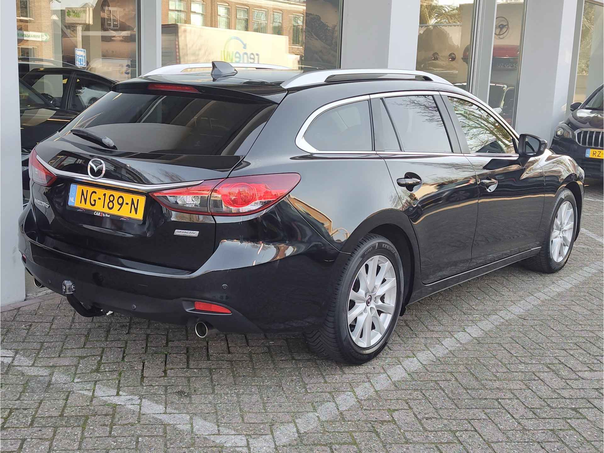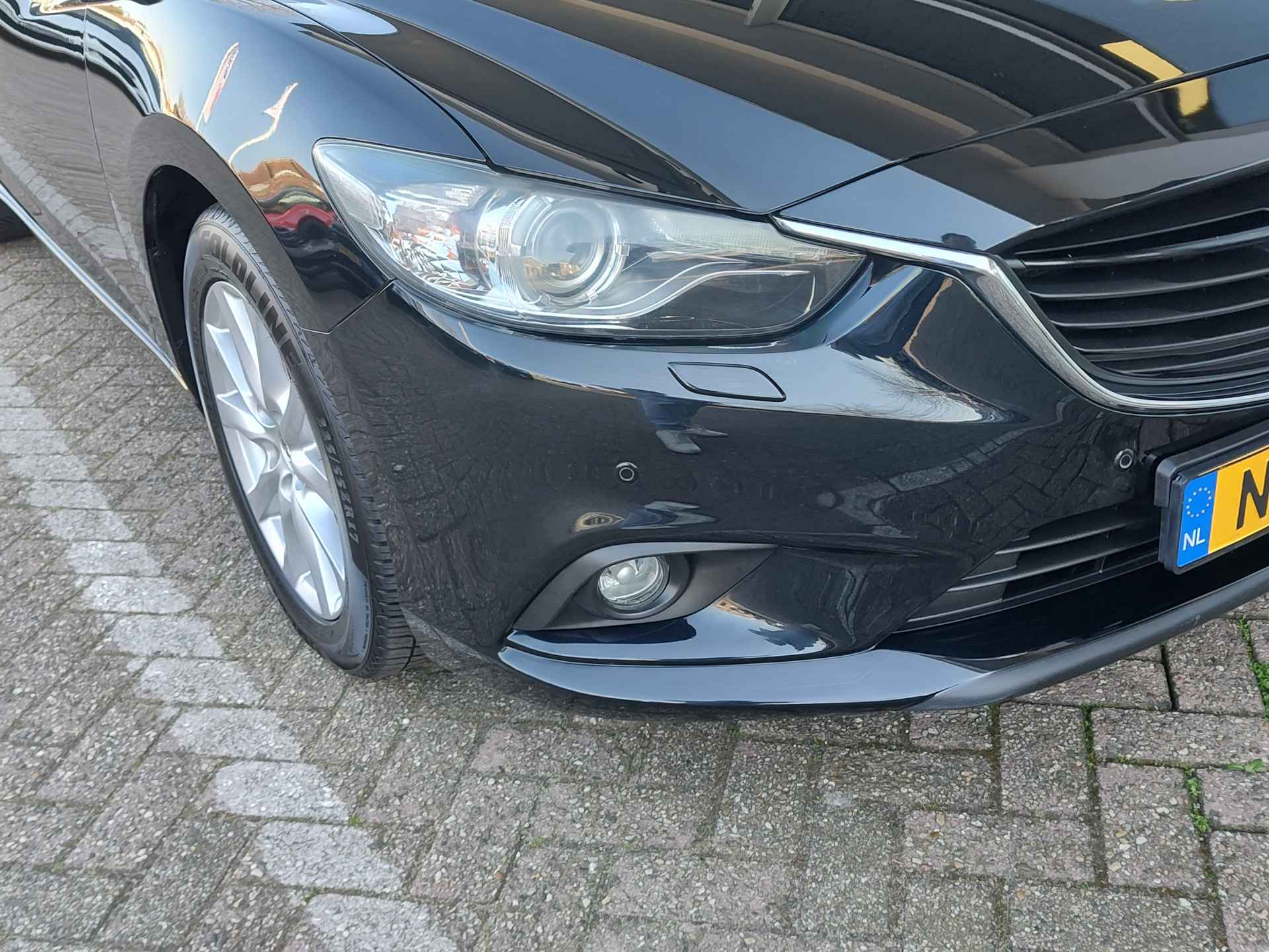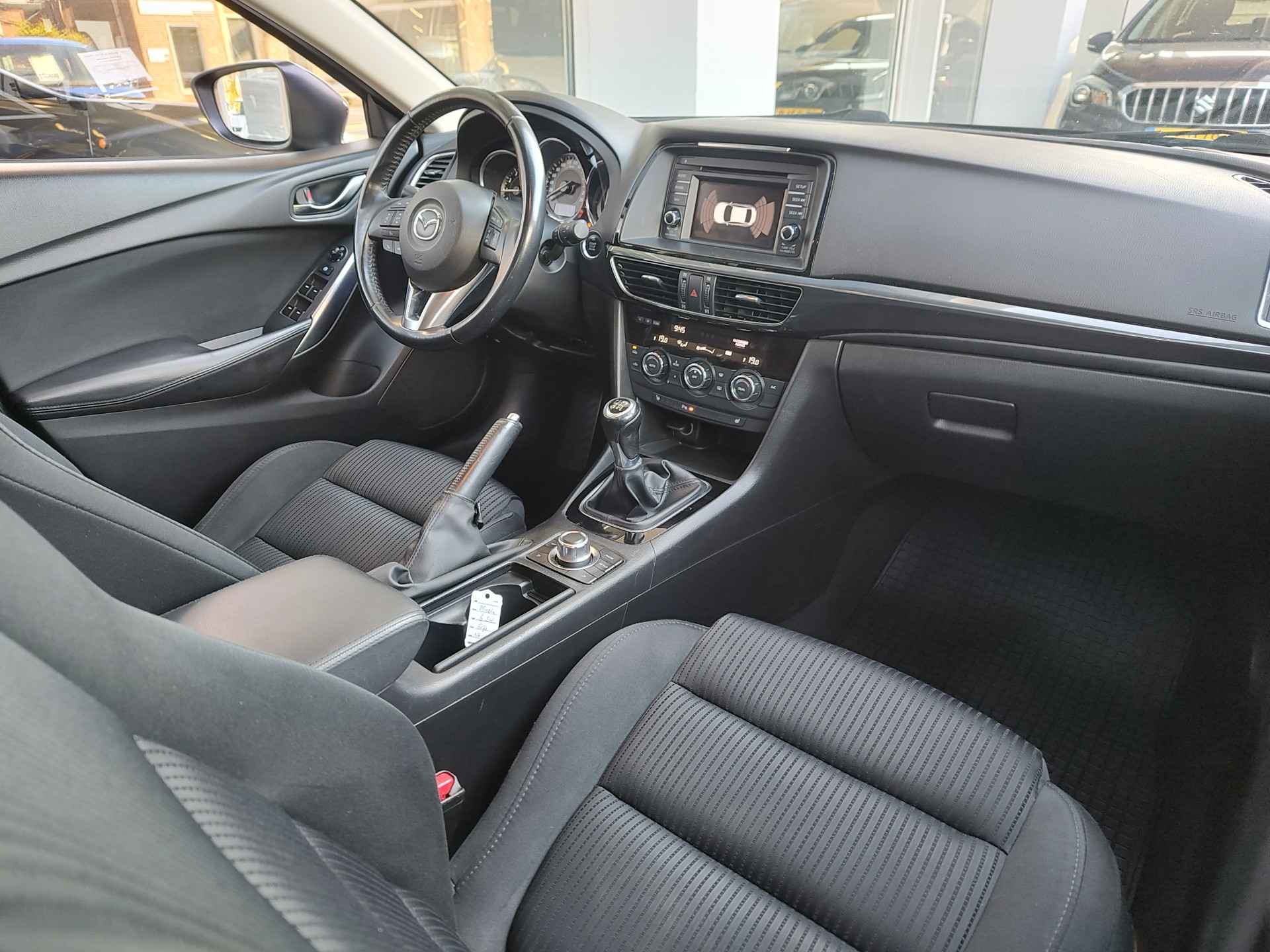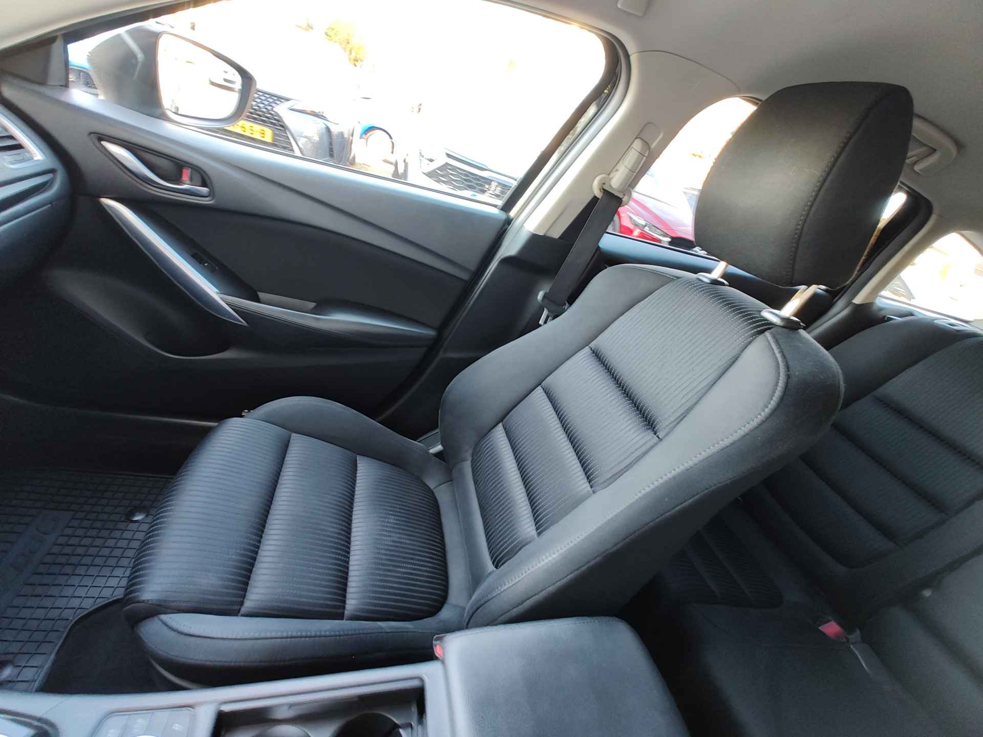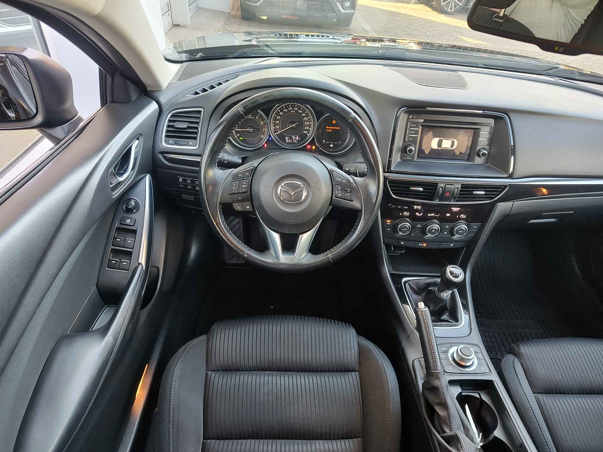 Bloedmooie en zeer goed rijdende Mazda 6 Sportbreak, met in het vooronder de betrouwbare SkyActiv motor en vanbinnen alle luxe aan boord die u een prettige rit van A naar B garandeert. Met opties als dodehoeksensoren, een rijstrooksensor, bi-xenon koplampen met koplampreiniging, stoelverwarming en een trekhaak, is de auto buitengewoon luxe te noemen voor zijn leeftijd. Hij is perfect onderhouden, er zit een enorm pak historie bij en de auto rijdt en schakelt dan ook uit de kunst. Geleverd inclusief een verse beurt, nieuwe APK, volle tank en 1 jaar BOVAG garantie. Staat op All Seasonbanden!