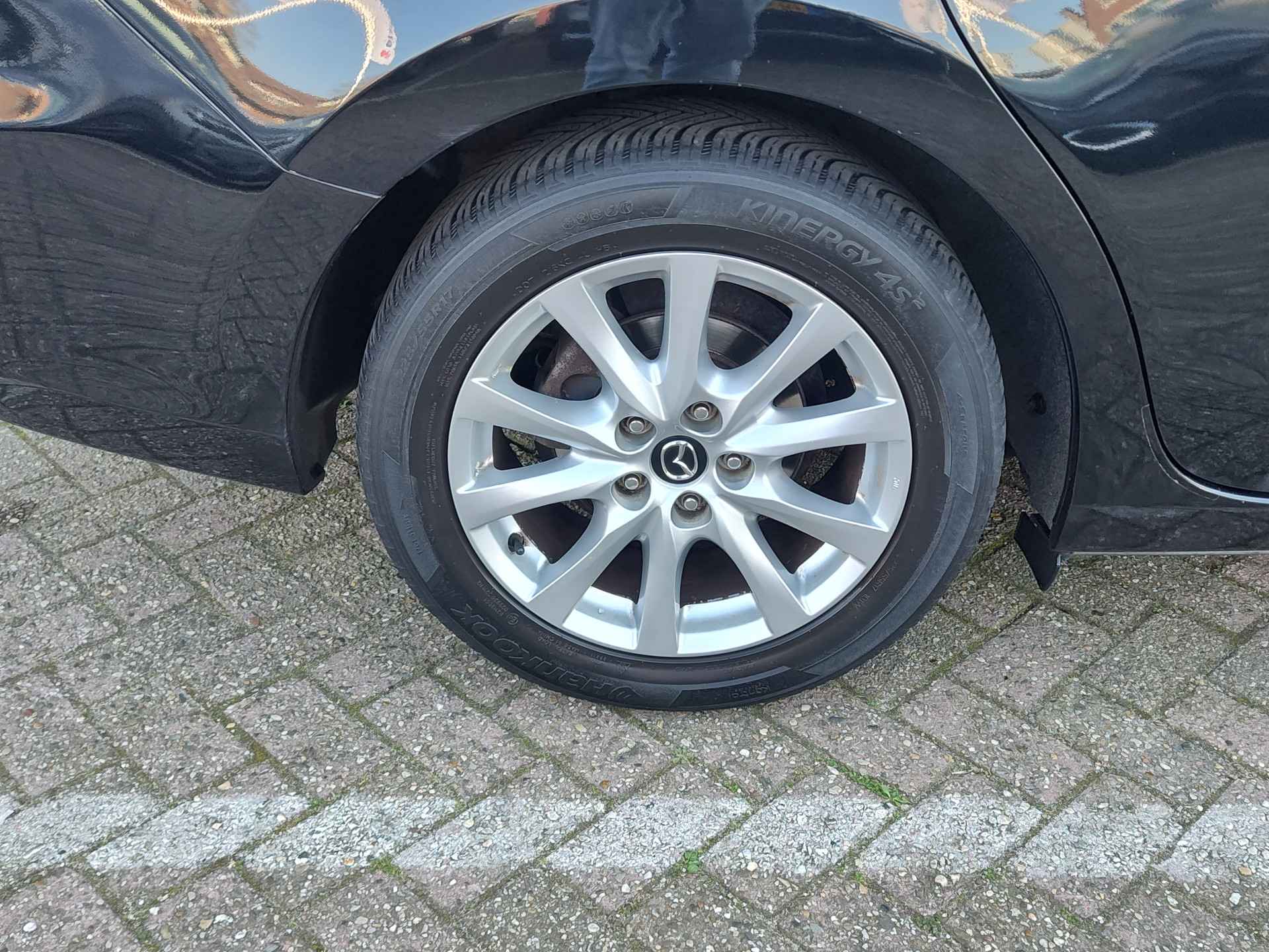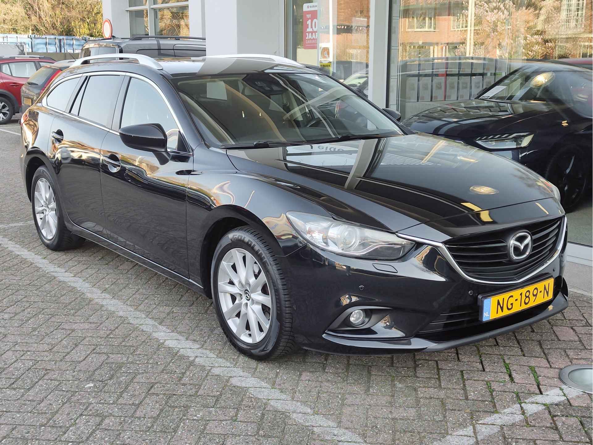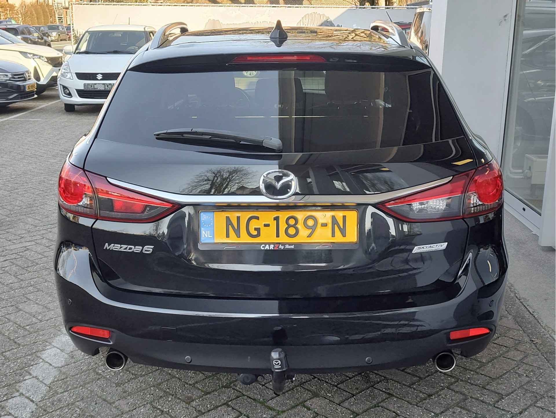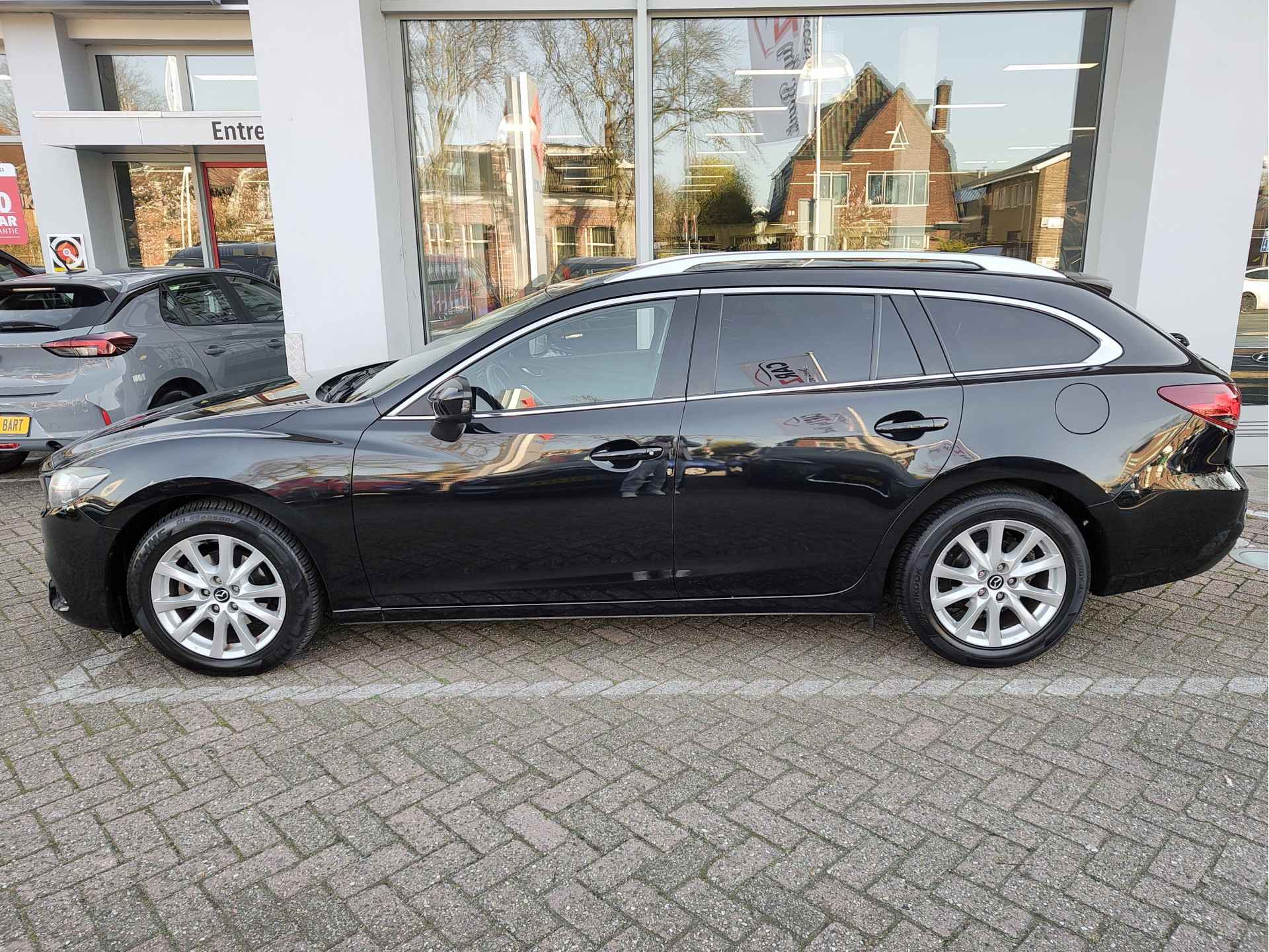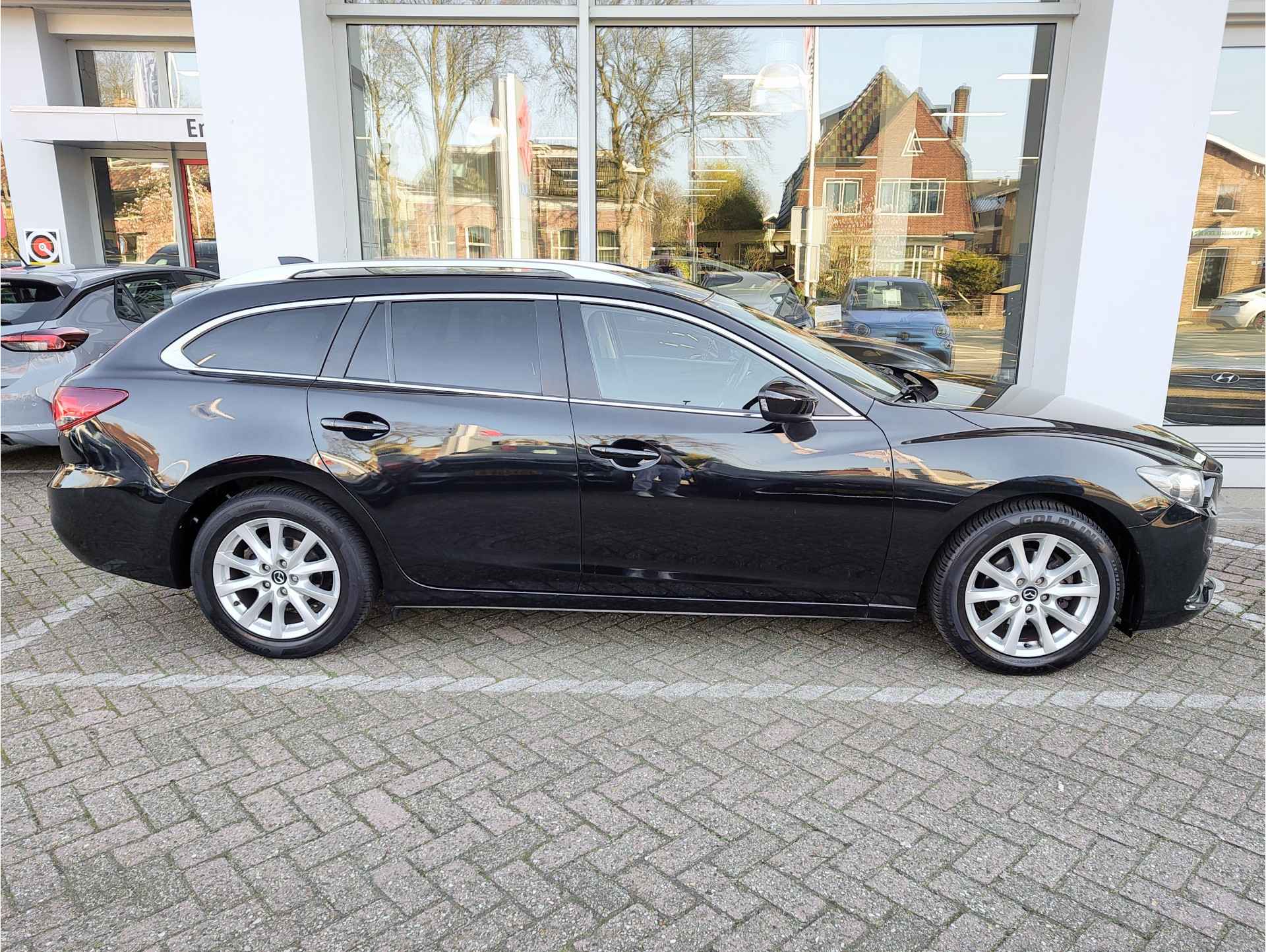 Bloedmooie en zeer goed rijdende Mazda 6 Sportbreak, met in het vooronder de betrouwbare SkyActiv motor en vanbinnen alle luxe aan boord die u een prettige rit van A naar B garandeert. Met opties als dodehoeksensoren, een rijstrooksensor, bi-xenon koplampen met koplampreiniging, stoelverwarming en een trekhaak, is de auto buitengewoon luxe te noemen voor zijn leeftijd. Hij is perfect onderhouden, er zit een enorm pak historie bij en de auto rijdt en schakelt dan ook uit de kunst. Geleverd inclusief een verse beurt, nieuwe APK, volle tank en 1 jaar BOVAG garantie. Staat op All Seasonbanden!