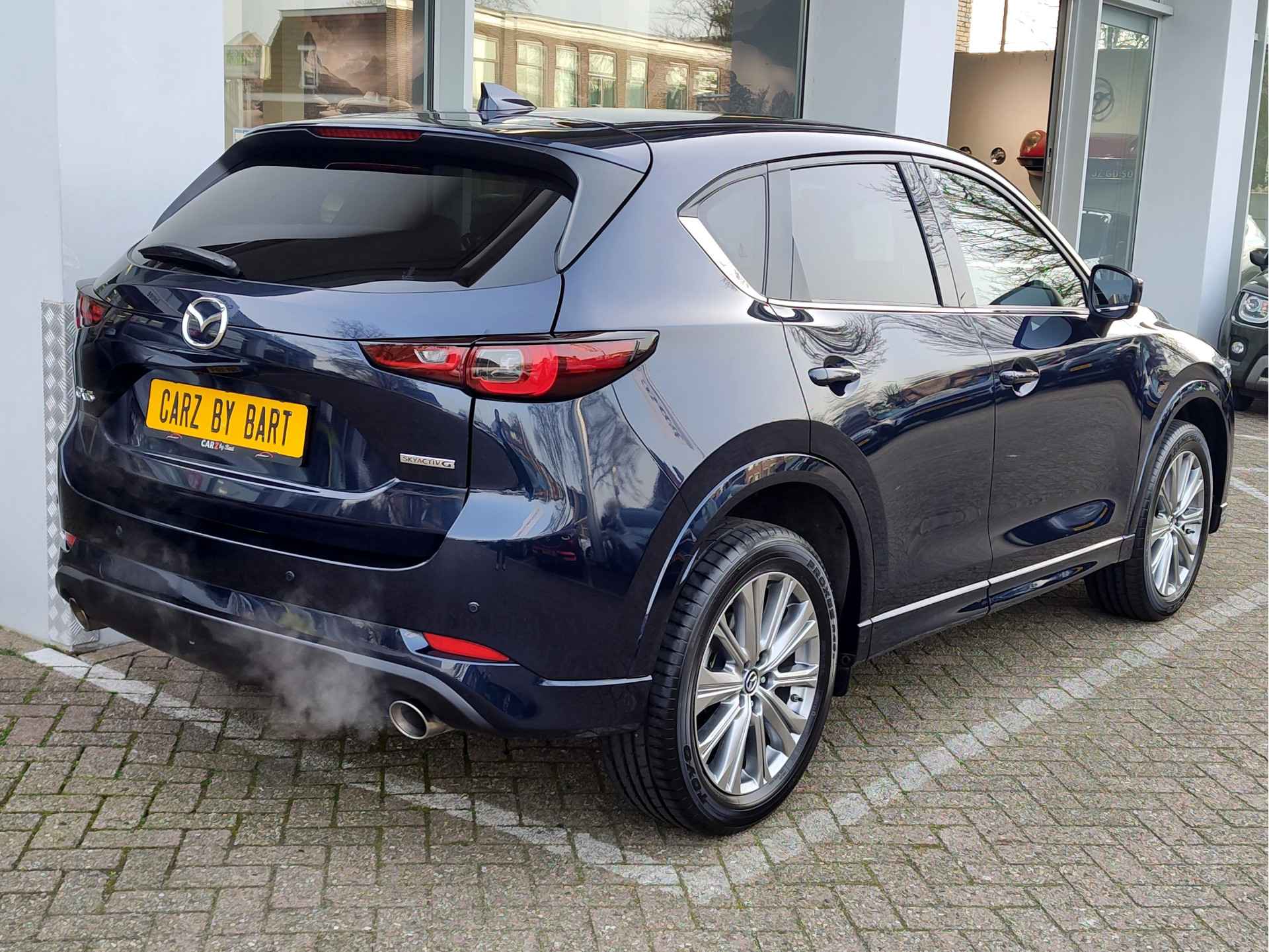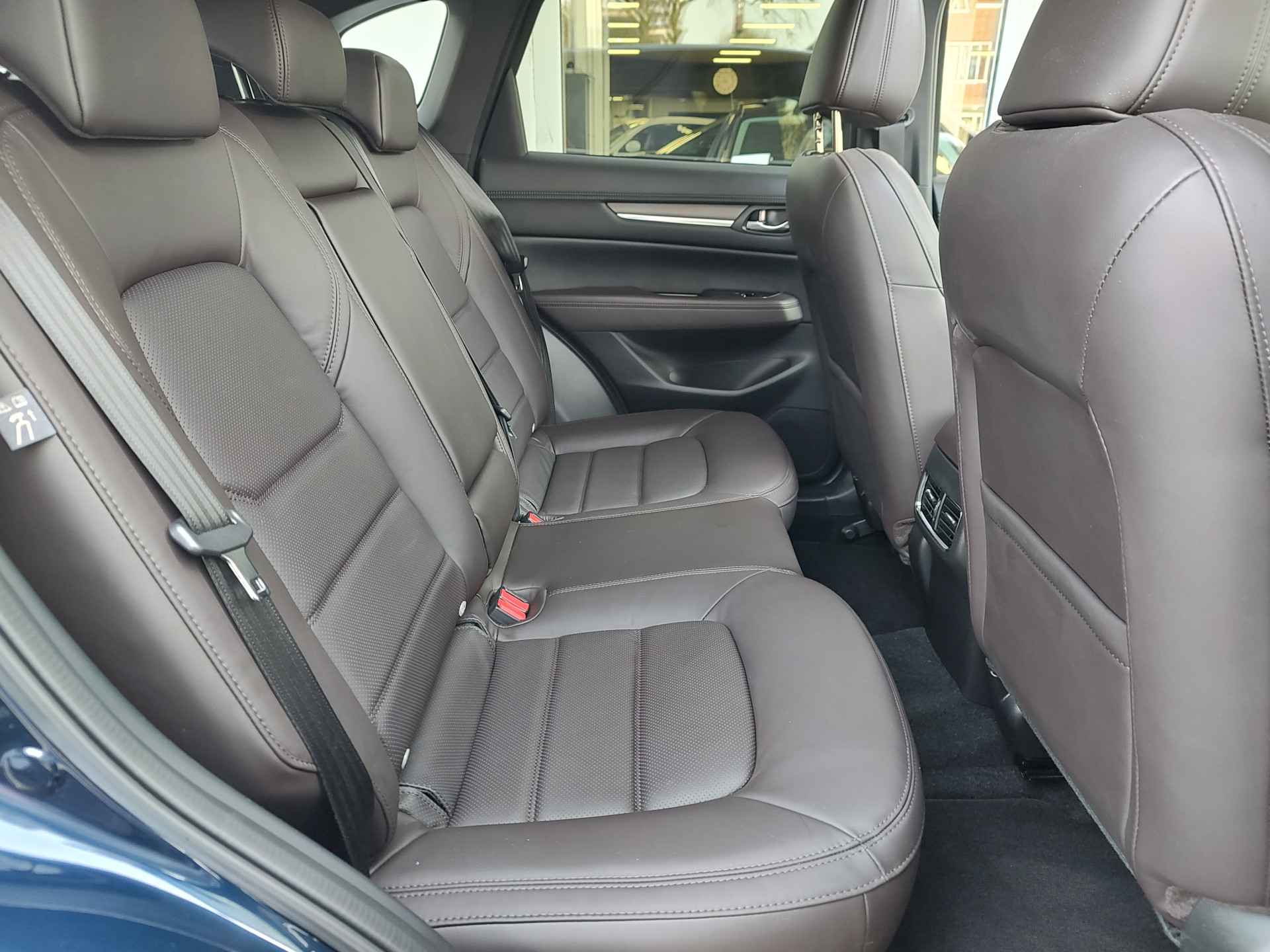 Er stond in 2022 geen duurdere CX-5 Skyactiv-G 165 in de showroom dan deze: de prachtige Takumi-uitvoering. De Takumi biedt u het summum van CX-5 rijden. Waar de luxe Homura-uitvoering al voorziet in zaken als stuurverwarming, BOSE audio en een rondomzicht-camera, doet de Takumi daar nog een schepje bovenop. Grotere wielen van 19 inch, luxe bruine nappalederen stoelen met stoelventilatie, een dubbele uitlaat, een head-up display en een verwarmde achterbank horen allen tot de basisuitrusting. Wij leveren deze ultraluxe CX-5 uiteraard helemaal rijklaar af, dus met beurt, nieuwe APK, volle tank en 1 jaar BOVAG garantie.