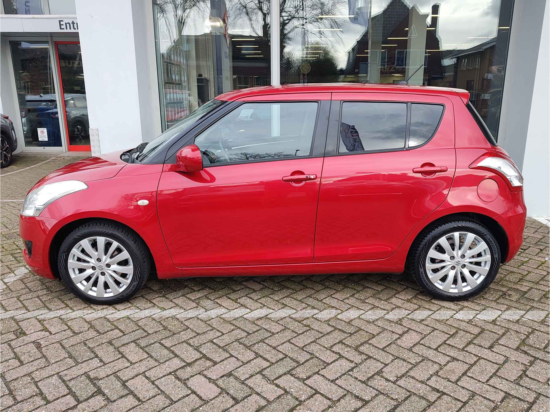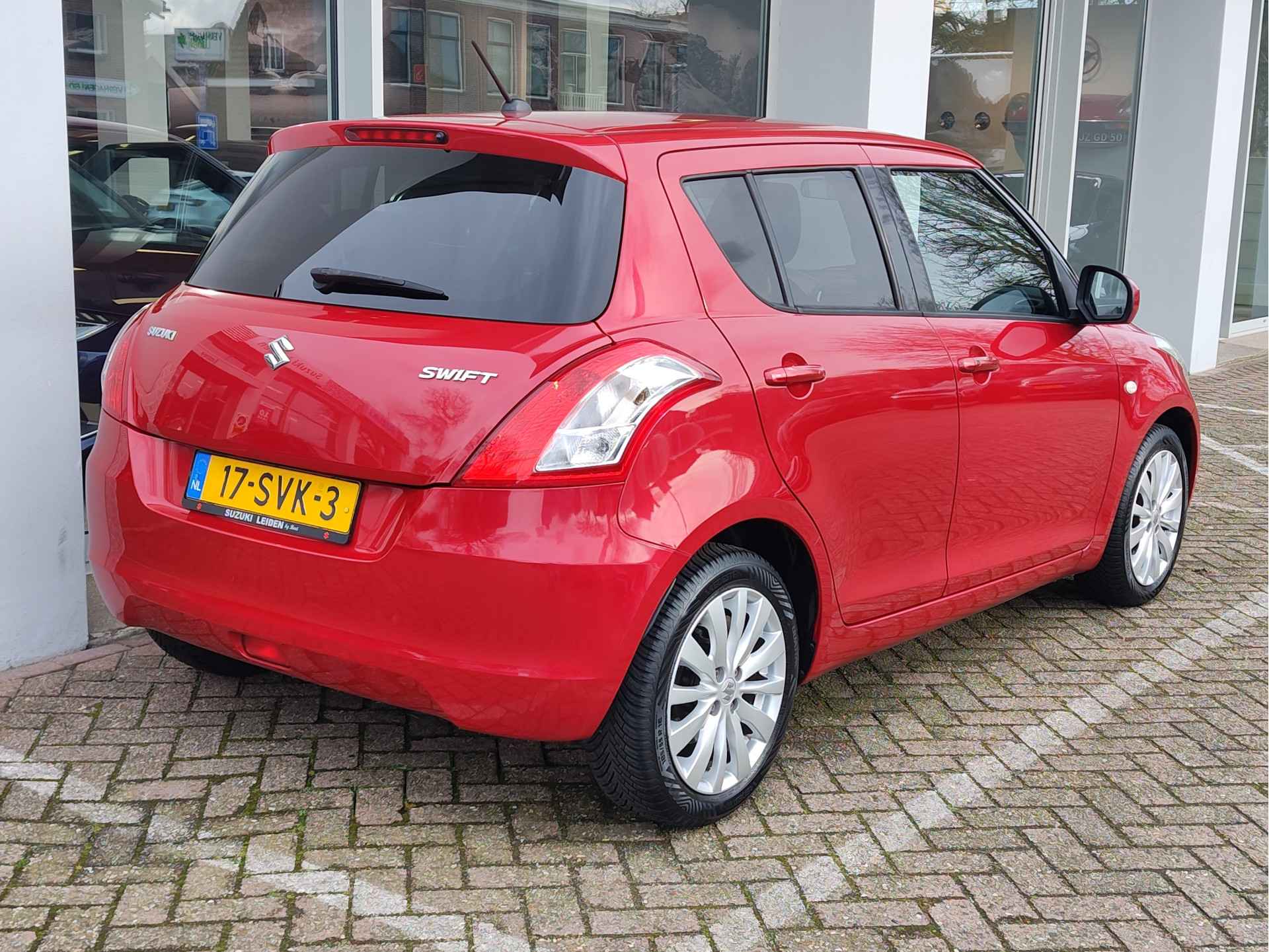 Zeer leuke, goed rijdende en sportief ogende Suzuki Swift, die bekend staat om zijn zeer efficiënte, maar ook zeer betrouwbare techniek. Dit alles wordt gecombineerd met sportieve rijeigenschappen en een rappe acceleratie. De Swift voelt als een soort 'kart', wat het rijplezier erg ten goede komt. Luxe uitvoering, voorzien van een radio-CD speler, cruise control, automatische airco, elektrische ramen en lichtmetalen velgen. Die velgen in combinatie met de rode kleur, geven de auto een zeer chique uitstraling. Fijne vijfbakl en een motor met een ketting. Wij leveren de auto met beurt, APK, volle tank en 6 maanden garantie.